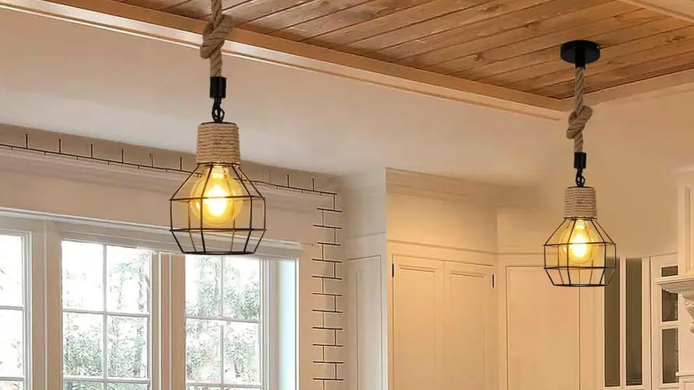 Otro modelo colgante con estética industrial, pero aún más ajustado de precio. Es sencilla, directa y muy efectiva si buscas algo minimalista sin renunciar al carácter.